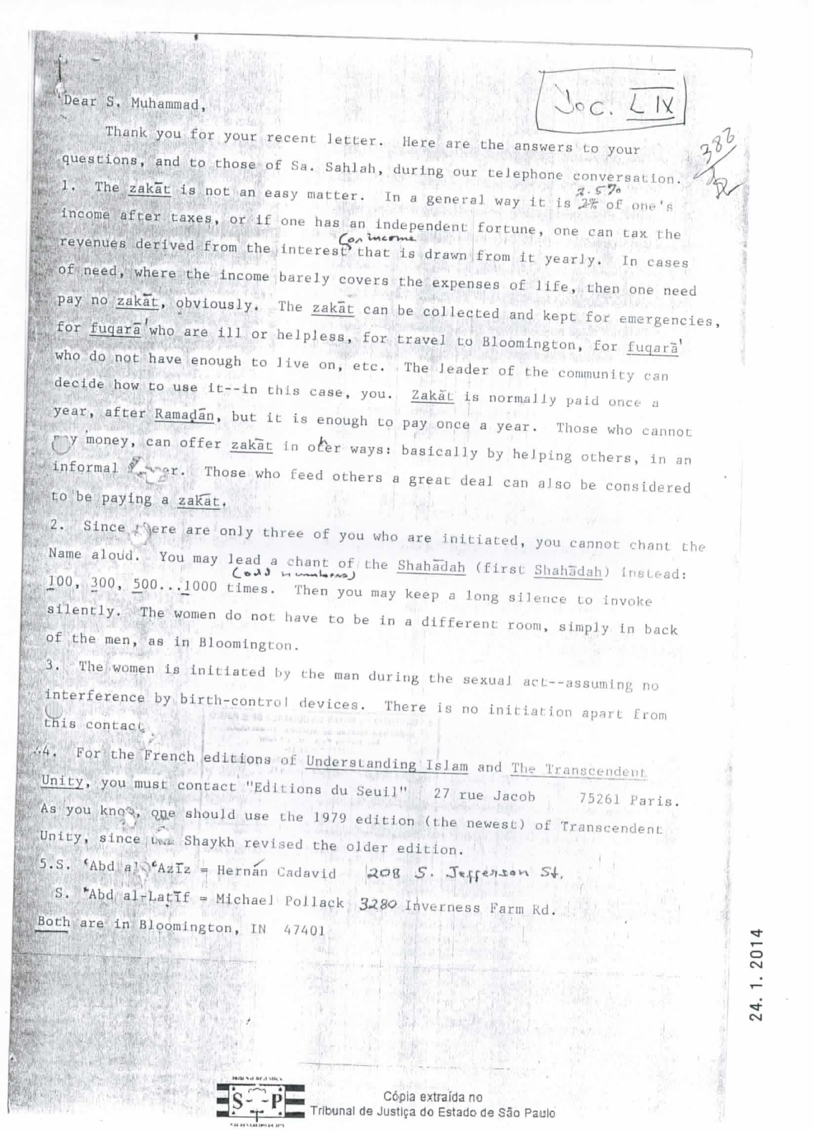 Nesta publicação, o Prometheo Liberto traz ao público aquela carta dentre toda a correspondência trocada entre Olavo de Carvalho/Sidi Muhammad e Martins Lings que é a mais comprometedora. Nela pode-se ver Lings dando as solicitadas instruções a Sidi de como pagar o zakat (esmola), um preceito exotérico do Islã. Ora, se Sidi Muhammad fosse apenas sufi, como ele alega, estaria desobrigado de pagar o zakat, pois tal preceito só deve ser seguido pelos muçulmanos. Assim, a submissão de Sidi Muhammad ao preceito exotérico de pagamento do zakat é uma prova de sua conversão. Lings menciona ainda que Sidi era o líder da comunidade dele. Logo, cabia a ele decidir como usar o dinheiro arrecadado com o zakat. Dito isso, não há mais como sofismar sobre a conversão de Olavo ao Islã.